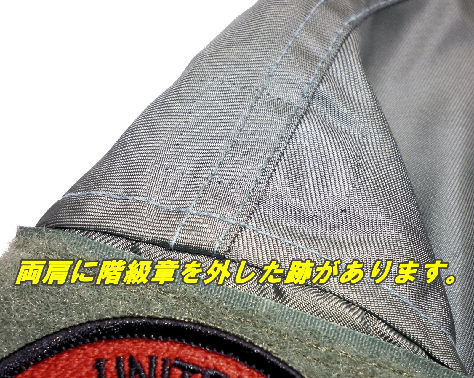 次世代フライトジャケットMCPS(CWU-106/P)の出現により30余年現役を務めましたが当店調査において2010年以降光沢生地での生産を確認されていないCWU-36/Pです。更に2022年トップガン2が公開以降非常に入手困難です。その非常に入手困難な実物CWU-36/Pフライトジャケットをトム・クルーズ氏が劇中ではなく映画トップガン2撮影現場で羽織っていたVFA-154仕様を再現してみました。両腕パッチはベルクロ仕様。胸のVFA-154パッチは海軍式に習いジャケットへ直接縫い付けです。元々USAF系ベルクロが胸にも施されていた物でそちらを取り除きVFA-154パッチを再度縫い付けたためライニング(裏地)生地にはUSAFベルクロを取り除いたミシン縫い跡が残っておりますがライニング故着用していたら分かりません。両肩の階級章を取り除いたミシン縫い跡があります。また両手首リブに毛羽立ち少々ありますが2000年会計実物USEDとしてはコンディション良好だと思います。宜しくご検討下さい。